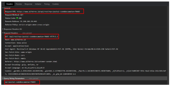 Selanjutnya saya membuka inspect element > network guna untuk merekam semua request headers dari web yang saya buka. Berikut request url yang saya dapatkan