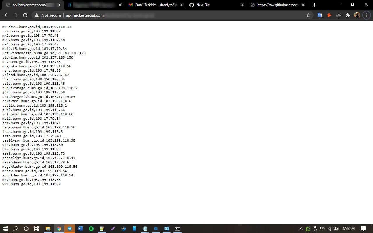 Seperti biasa saya melakukan scan Subdomain di website api.hackertarget.com
