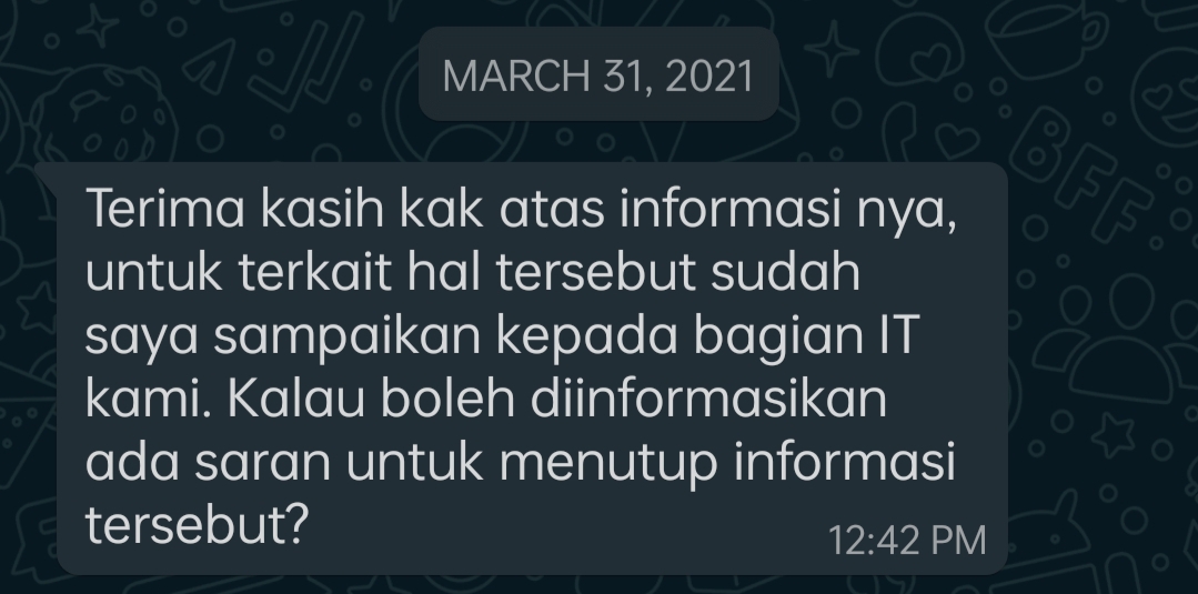 - 31 Maret 2021 mendapatkan respons