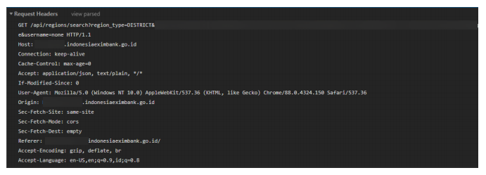 Berikut request headers yang saya dapatkan ketika saya memilih negara