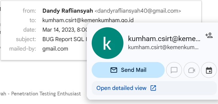 Padahal instansi tersebut ada platform CSIRT nya di csirt.kemenkumham.go.id tapi sepertinya platform CSIRT hanya untuk pajangan dan ikut-ikutan aja :D