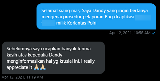 Pertama saya melaporkan BUG ini kepada Pak Kompol Yunus Head Of CCIC Polri