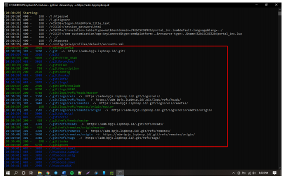 Lalu saya mencoba dump direktori .git nya dengan menggunakan GIT Dumper
