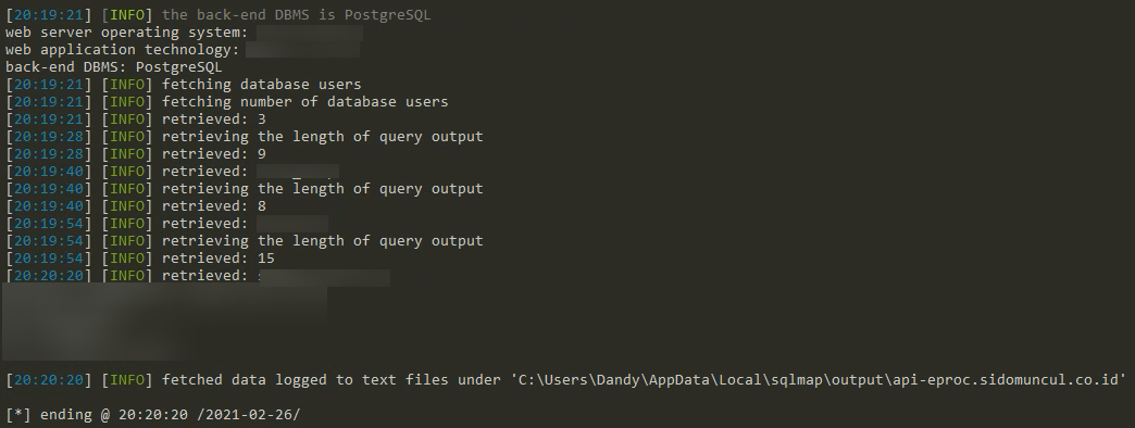 Berikut database yang saya dapatkan ketika melakukan scan di SQL Map