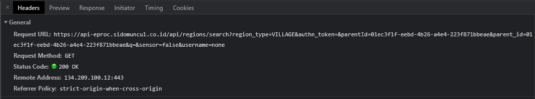 Berikut request url yang saya dapatkan setelah mencoba untuk merekam request headers yang berjalan